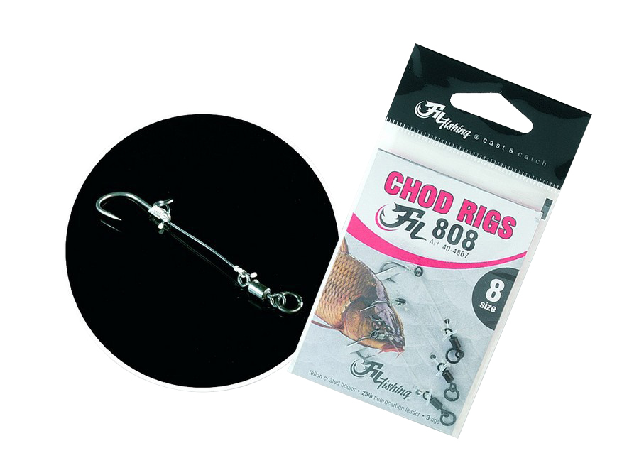 Rybaření s universálním návazcovým systémem Chod Rig je jednoduše senzací. Ručně vázaný kvalitní návazec na Fluorocarbonu nosností 25 lb ( 11,34 kg ), který je osazen kvalitními háčky. Je to všestranný hotový návazec, který je ideální pro všechny typy vod. Ať už to jsou různá jezera, rybníky, nebo dokonce řeky. Chod Rig je stal skutečnou celebritou mezi ostatními kompletními návazci.