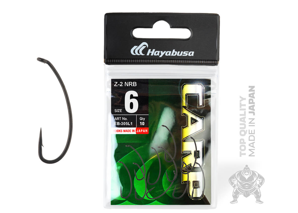 Haybusa Z-2, háček legendárního tvaru, který má na světě velké množství zastánců. Při správném navázání je tento háček nekompromisní a velice úspěšnou zbraní, která vždy skončí pevně zaseknuta ve spodním pysku kapří tlamy. Jsou vhodné jak pro klasické kaprové montáže, tak i pro moderní prezentace nástrah.