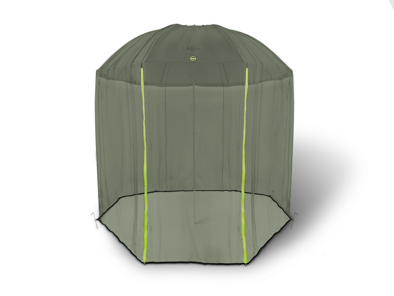 Vysoko efektívna ochrana na brehoch zamorených dotieravým hmyzom! Špeciálne navrhnutá moskytiéra, ktorú je vďaka univerzálnym rozmerom možné uchytiť na drvivú väčšinu rybárskych dáždnikov. Systém uchytenia spočíva v centrálnom otvore na špic dáždnika a v 8 kolíkoch, ktoré sú súčasťou balenia. Vchod sme vybavili dvomi zipsami reflexnej farby, aby sme umožnili ľahšiu orientáciu v noci a pri nepriaznivých svetelných podmienkach. Jemná sieťovina nepustí k Vášmu telu ani jedného neželaného spoločníka.