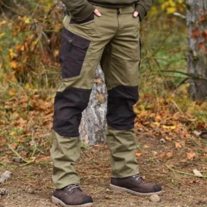 Univerzálne nohavice pre poľovníkov, rybárov aj turistov. Spojenie bavlny a spandexu zaisťuje pohodlie, pružnosť a dlhú životnosť. Tichý materiál, ergonomický strih, kvalitné šitie a funkčné vrecká