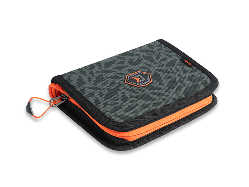 Po úspešnom modeli Delphin ATAK! Spun sme sa rozhodli zaradiť do našej ponuky novú verziu Darx ATAK! Spun. Ako už z názvu vyplýva, nová elegantná tmavá kamulfáž DARX zamedzí rýchlemu zašpineniu a stane sa unikátnym doplnkom rybárskej výbavy. Praktické peračníkové puzdro bolo navrhnuté špeciálne pre odkladanie rozličných umelých nástrah ako sú plandavky, menšie voblery alebo gumy pripravené na jigoch. Peračník Spun ocenia najmä prívlačiari, aby ochránili svoje TOP nástrahy. Vnútro peračníka je na oboch stranách tvorené hrubšou vrstvou profilovanej EVA peny, kde si môže lovec odkladať svoje najpoužívanejšie nástrahy a mať ich ihneď poruke pre prípad rýchlej výmeny. Ako prevenciu proti zachytávaniu háčikov nástrah o seba sme peračník vybavili pevnou plastovou priečkou. Ocenia ju nielen vyznávači veľmi populárneho lovu pstruhov na stojatých vodách, známym pod názvom Trout Area, ale aj všetci ostatní rybári, ktorí sa neboja často meniť nástrahy a tak vyprovokovať aj pasívnu rybu k záberu. Na kvalitný vonkajší zips oranžovej farby je pripevnený plastový úchyt pre lepšiu manipuláciu, ktorý je na konci rozšírený, pre jednoduché a rýchle uchopenie. Doplnky oranžovej farby umožňujú rybárovi rýchlejšie zbadať puzdro, a to aj za šera, počas skorých ranných alebo neskorých večerných vychádzok. Dizajn tašky dopĺňa naša jedinečná tmavá ATAK! kamufláž so siluetami dravcov.