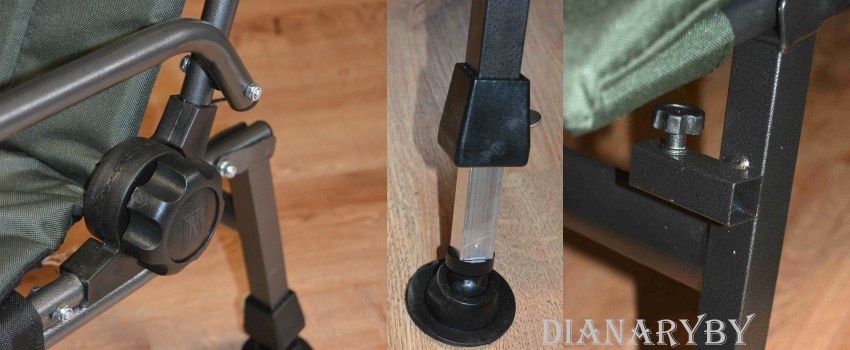 Tieto rybárske kresla sa vyznačujú pevnou kovovou konštrukciou a vysokou nosnosťou, výškovo rýchlo nastaviteľné nožičky (každá nožička je samostatné nastaviteľná podľa terénu).
