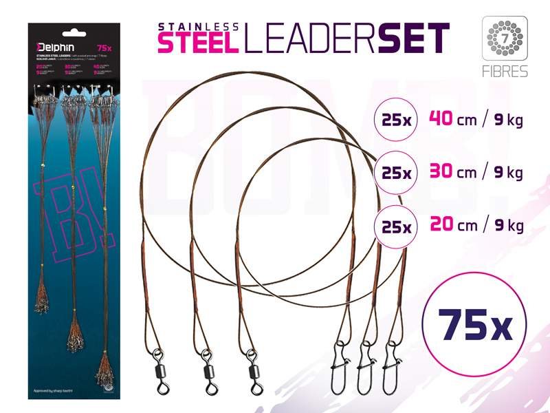 Set oceľ. laniek BOMB! S obratl. a karab. / 7 vlákien | 75ks/35cm/9,12,15kg