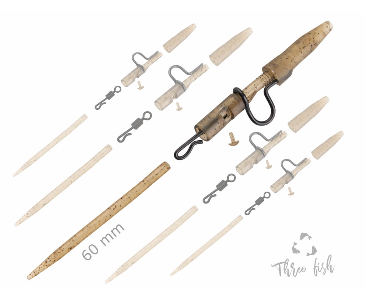 - Obsah balení: 5x převlek Tail Rubber, 5x závěska Heavy Duty Clip, 5x aretační kolík pro správné zafixování obratlíku, 5x Quick Change Swivel v prémiové kvalitě s antireflex (nelesknoucí) povrchovou úpravou, 5x 60mm Anti tangle proti zamotání návazce